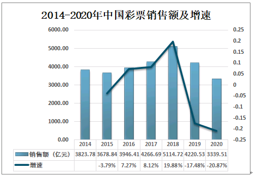 2014-2020年中国彩票销售额及增速