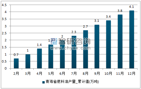 智研咨询数据显示:2017年12月青海省燃料油产量为0.3万吨,2017年1-12月止累计青海省燃料油产量为4.1万吨。