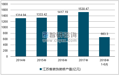2014-2018年江苏省装饰装修产值统计图