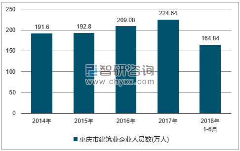 2018年1-6月重庆市建筑业企业单位为2661个,建筑业企业人员数为164.84万个,按总产值计算的劳动生产率为202507元/人。