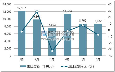 月份 | 出口数量(吨) | 出口金额(千美元) | 出口数量同比(%) | 出口金额同比(%) |
