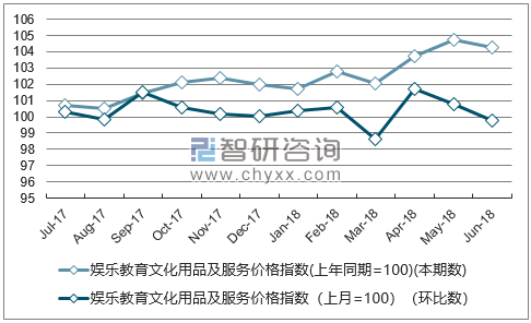 智研咨询数据显示:2018年6月青海娱乐教育文化用品及服务价格指数本期数为104.28,本期累计数为103.2,环比数为99.76。