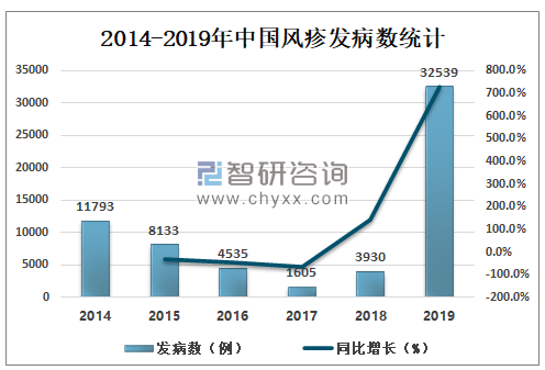 2014-2019年中国风疹发病数统计