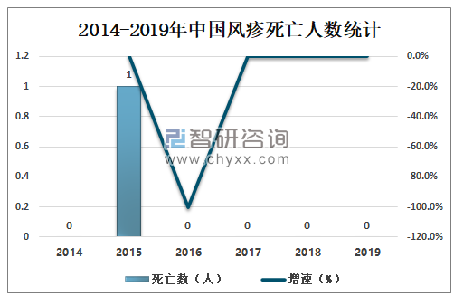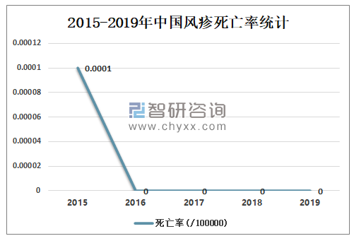 2015年中国风疹死亡率为0.0001/10万,2016-2019年中国风疹死亡率保持0死亡记录。