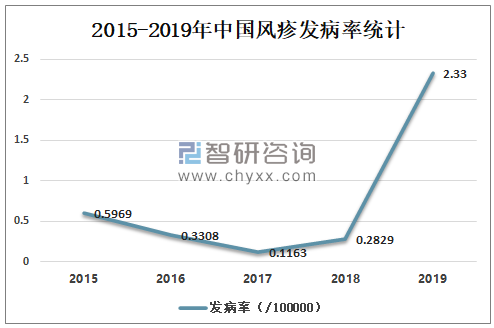2015-2019年中国风疹发病率统计