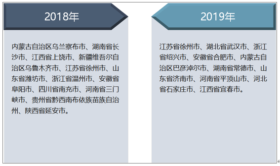 2020年3月11日中华人民共和国住房和城乡建设部住房保障司公布了2019年棚户区改造工作拟激励城市名单,确定2019年棚户区改造工作拟激励支持的城市有:江苏省徐州市、湖北省武汉市、浙江省绍兴市、安徽省合肥市、内蒙古自治区巴彦淖尔市、湖南省常德市、山东省济南市、河南省平顶山市、河北省石家庄市、江西省宜春市。