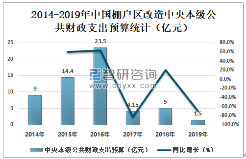 2014-2019年中国棚户区改造中央本级公共财政支出预算统计(亿元)