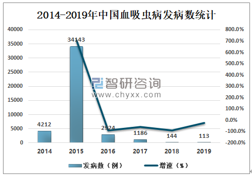 智研咨询发布的《2020-2026年中国血吸虫病治疗药行业市场需求预测及投资价值研究报告》数据显示:2015-2019年中国血吸虫病发病数逐年减少,2018年中国血吸虫病发病数为144例,较2017年减少了1042例;2019年中国血吸虫病发病数为113例,较2018年减少了31例。