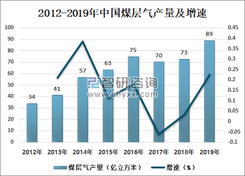 煤层气可以用作民用燃料、工业燃料、发电燃料、汽车燃料和重要的化工原料,用途非常广泛。2012年以来我国煤层气产量呈波动上升趋势,2018年中国煤层气产量73亿立方米,较上年增长3亿立方米,同比增长3.42%;2019年中国煤层气产量89亿立方米,较上年增长16亿立方米,同比增长22.59%。