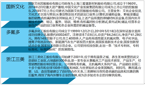 2019年氢氟酸主要上市企业有国新文化控股股份有限公司、多氟多化工股份有限公司、浙江三美化工股份有限公司等。