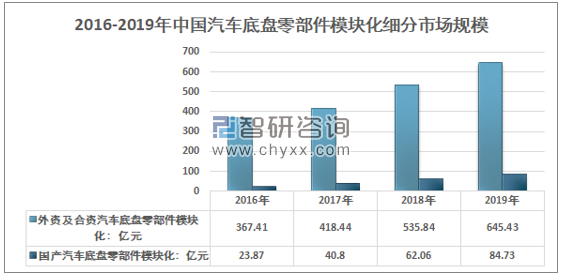 2016-2019年中国汽车底盘零部件模块化市场规模