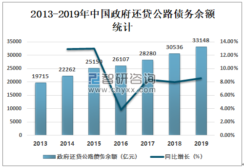 近年来中国政府还贷公路债务余额逐年增加,2018年中国政府还贷公路债务余额为30536亿元,同比增长7.98%;2019年中国政府还贷公路债务余额为33148亿元,同比增长8.55%。