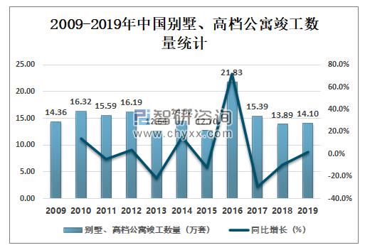 2009-2019年中国别墅、高档公寓竣工数量统计