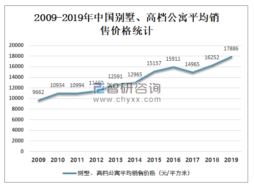 2009-2019年中国别墅、高档公寓平均销售价格统计
