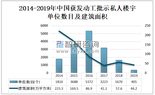 2014-2019年中国获发动工批示私人楼宇单位数目及建筑面积