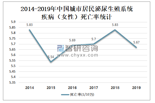 2014-2019年中国城市居民泌尿生殖系统疾病死亡率统计