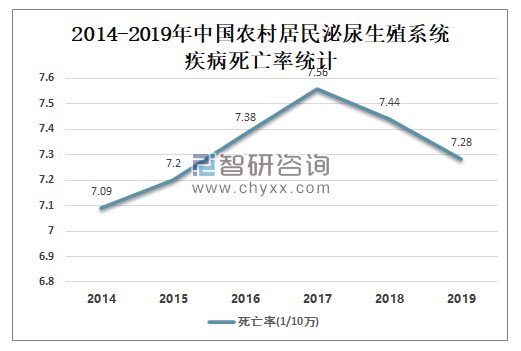 2014-2019年中国农村居民泌尿生殖系统疾病死亡率统计