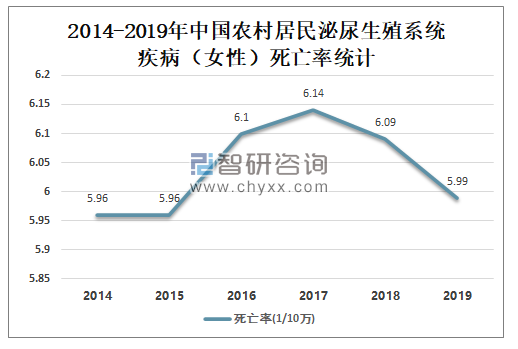 2014-2019年中国农村居民泌尿生殖系统疾病(女性)死亡率统计
