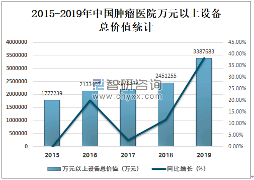 2015-2019年中国肿瘤医院万元以上设备总价值统计