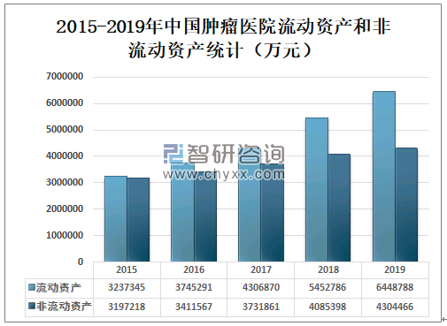 2015-2019年中国肿瘤医院流动资产和非流动资产统计(万元)