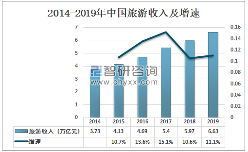 智研咨询发布的《2021-2027年中国乡村旅游行业供需策略分析及市场供需预测报告》数据显示:旅游是一种高级的精神享受,是在物质生活条件获得基本满足后出现的一种追享欲求。有一位社会学家说,旅游者的心理中有“求新、求知、求乐”这样三条。2019年中国旅游收入为6.63万亿元,同比增长11.1%。