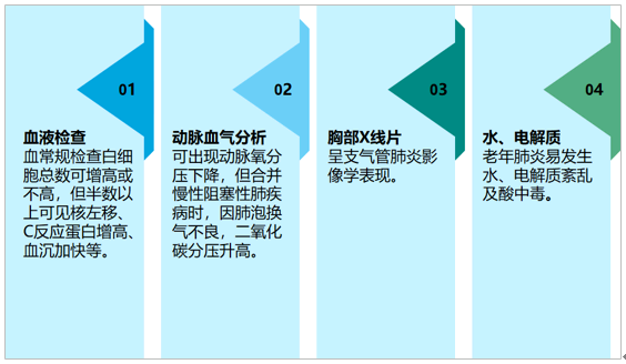 肺炎的检查主要包括:血液检查、动脉血气分析、胸部X线片、水、电解质检测等。