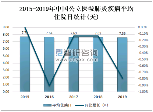 随着中国医疗水平的不断提升,中国公立医院肺炎疾病平均住院日逐年减少,2019年中国公立医院肺炎疾病平均住院日为7.56天,较2018年减少了0.06天,同比减少0.79%。