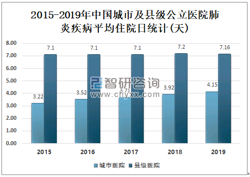 2019年中国城市公立医院肺炎疾病平均住院日为4.15天,较2018年增加了0.23天;县级公立医院肺炎疾病平均住院日为7.16天,较2018年减少了0.04天。