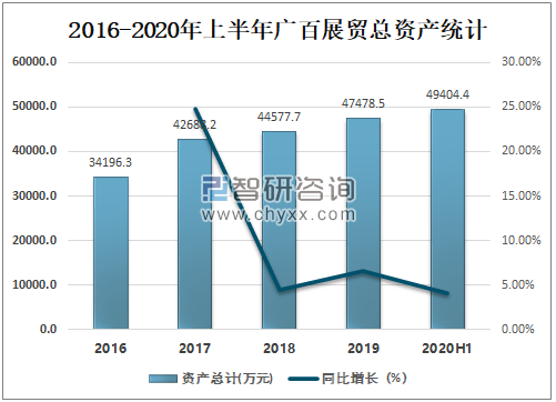 2016-2020年上半年广百展贸总资产持续增长,2019年广百展贸总资产为47478.5万元,较2018年增加了2900.77万元,同比增长6.51%。2020年上半年广百展贸总资产49404.4万元。