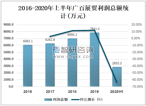 2016-2019年广百展贸利润总额持续增长,2019年广百展贸利润总额达7841.4万元,较2018年增加了846.156万元,同比增长12.10%。2020年受新冠肺炎疫情影响,2020年上半年广百展贸利润总额大幅下滑,2020年上半年广百展贸利润总额为2855.3万元,但从长期来看,随着新冠肺炎疫情的好转,未来利润总额将恢复增长。