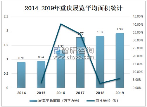 重庆展览平均面积逐年增加,2019年重庆展览平均面积为1.93万平方米,较2018年增加了0.11万平方米,同比增长6.04%。