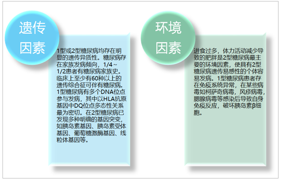 糖尿病是一组以高血糖为特征的代谢性疾病。高血糖则是由于胰岛素分泌缺陷或其生物作用受损,或两者兼有引起。长期存在的高血糖,导致各种组织,特别是眼、肾、心脏、血管、神经的慢性损害、功能障碍。糖尿病的病因主要有遗传因素和环境因素两个方面。