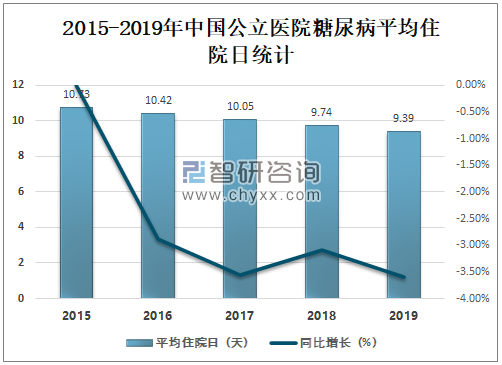 2015-2019年中国公立医院糖尿病平均住院日统计