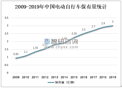 2009-2019年中国电动自行车保有量统计(亿辆)
