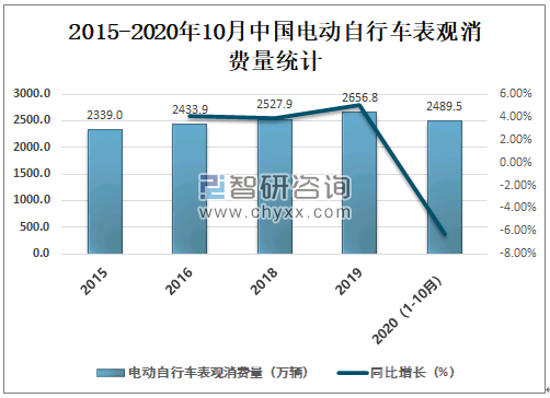 2015-2020年10月中国电动自行车表观消费量统计(万辆)