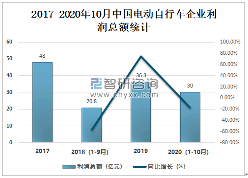 2020年1-10月中国电动自行车企业利润总额已完成30亿元,预计未来将继续保持增长。