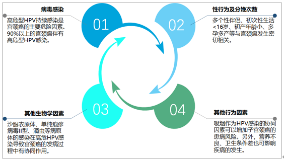 宫颈癌是妇科常见的恶性肿瘤,由多种因素共同影响造成的。其中HPV(人乳头瘤病毒)的致癌亚型感染(主要是HPV-16和HPV-18),与宫颈癌的发生密切相关,大约70%的病例是由这两种病毒引起的。吸烟、早期性交、多个性伴侣和口服避孕药是引发宫颈癌的重要危险因素。