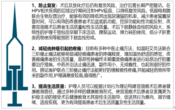 宫颈癌的三级预防主要包括防止复发、减轻由肿瘤引起的疼痛等方面。