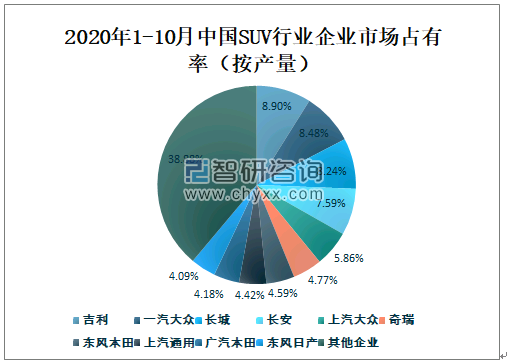2020年1-10月中国SUV行业企业市场占有率(按产量)