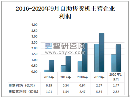智研咨询发布的《2021-2027年中国自助售货行业市场专项调查及投资前景分析报告》数据显示:另外澳柯玛是以商用冷链产品、冷链物流装备、超低温设备、洗衣机、空调、自动售货机等为发展业务,2020年1-9月澳柯玛营业利润为1.47亿元,智莱科技营业利润为2.32亿元。
