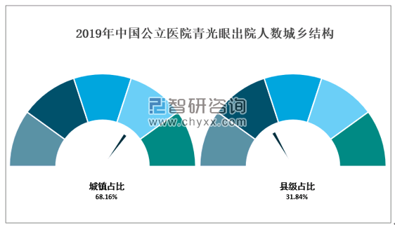 2019年中国城镇青光眼出院人数占全国青光眼总出院人数的68.16%,占比较大;县级青光眼出院人数占全国青光眼总出院人数的31.84%,占比较小。
