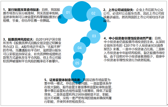 中国股票市场发展存在的主要问题有发行制度改革亟待加速、上市公司诚信缺失、股票质押风险较大、中小投资者非理性投资依然严重、证券监管体制亟待完善等。