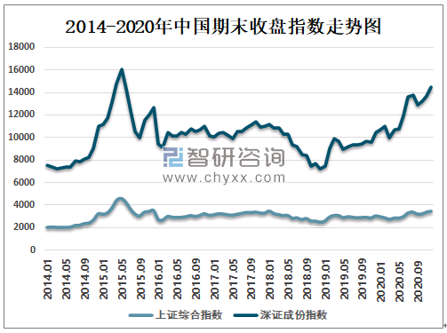 总体来看2020年上证综合指数呈增长趋势,2020年12月上证综合指数为3473,较2020年1月增长了14471。2020年深证成份指数较为平稳,2020年12月深证成份指数为496,较2020年1月增长了3789。