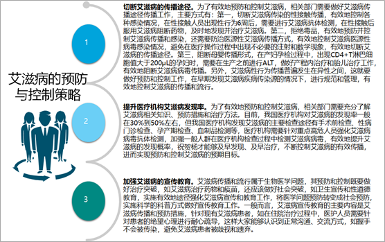目前艾滋病疫苗无法通过药物治愈,因此切断传播途径和保护易感者仍是预防和控制艾滋病传播的重要手段。在现代化社会的发展中,艾滋病仍在不断蔓延和扩散,在不注重艾滋病流行控制和预防工作的情况下,极易影响社会经济的发展。为了有效地改善这一现状,社会各界需要实行相应的法律手段,开展道德和健康教育活动,大力普及安全性行为的相关内容,不断预防并控制艾滋病的流行。