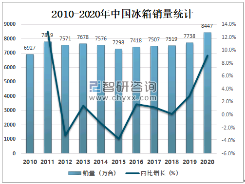 随着中国经济的发展和居民可支配收入的提升,人们生活水平不断提高,对生鲜商品的健康保鲜需要越来越高,从而促使冰箱需求量越来越大,2020年中国冰箱销量达8447万台,较2019年增加了709万台,同比增长9.2%。近年来以节能环保、健康保鲜、消费升级为核心,个性化、多样化消费逐渐成为冰箱市场的主流,保证产品质量安全,通过创新供给激活消费的重要性显著提升,也给冰箱产业带来新的机遇。