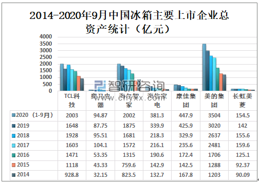 2014-2020年9月中国冰箱主要上市企业总资产统计(亿元)