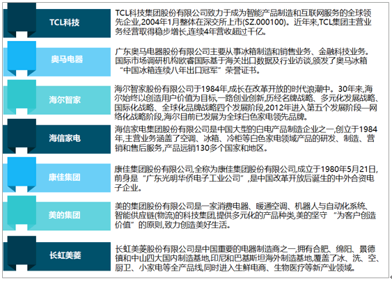 中国冰箱上市企业主要有TCL科技、奥马电器、海尔智家、海信家电、康佳集团、美的集团、长虹美菱等。