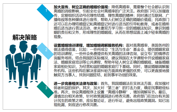 面对离婚率逐年攀升的情况,解决策略主要有:加大宣传,树立正确的婚姻价值观;设置婚姻培训课程,增加婚姻调解服务机构;进一步完善相关法律与政策等。