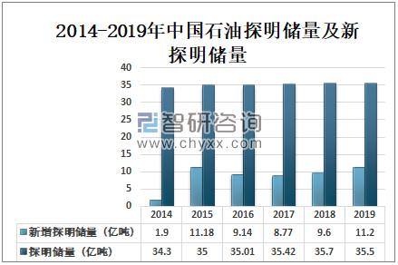 2014-2019年中国石油探明储量及新探明储量