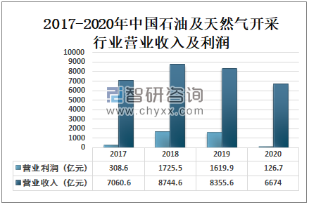2017-2020年中国石油及天然气开采行业营业收入及利润